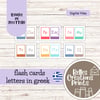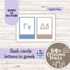 A set of preschool flash cards designed to help young learners explore the greek alphabet. The file includes twenty four cards that can be used for letter recognition, montessori inspired activities and memory games.