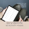 Αυτό το βιβλίο δραστηριοτήτων 50 σελίδων περιλαμβάνει απλές και διασκεδαστικές ασκήσεις διαίρεσης σε κατακόρυφη και οριζόντια μορφή. Είναι ιδανικό για εξάσκηση στο σπίτι ή στο σχολείο και βοηθά τα παιδιά να ενισχύσουν τις μαθηματικές τους δεξιότητες με ευχάριστο τρόπο.