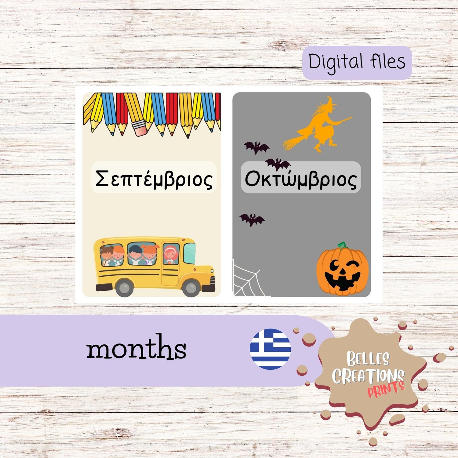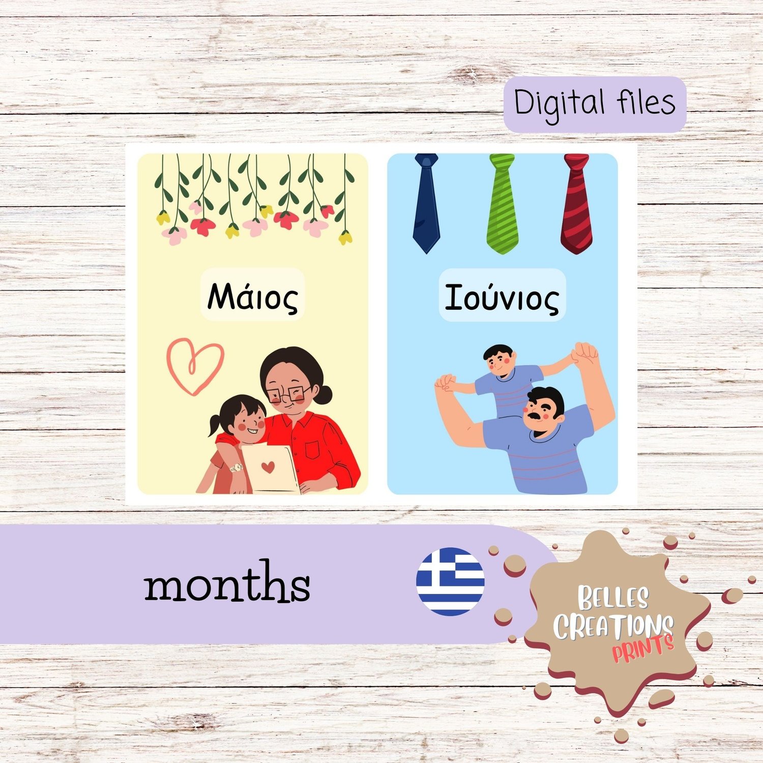 Κάρτες Μήνα με Εικόνες – 2 Εκδοχές (Ελληνικά & Αγγλικά) / Flashcard Set with Monthly Themes – 2 Versions (Greek & English)