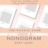 Το Nonogram είναι ένα παζλ όπου συμπληρώνεις τα κελιά ενός πλέγματος με βάση αριθμητικά στοιχεία για να αποκαλύψεις μια κρυμμένη εικόνα. Αυτό το βιβλίο περιλαμβάνει 100 σελίδες με 100 παζλ μεγέθους 15x15 για τη διασκέδασή σας.