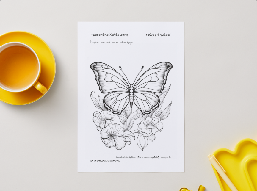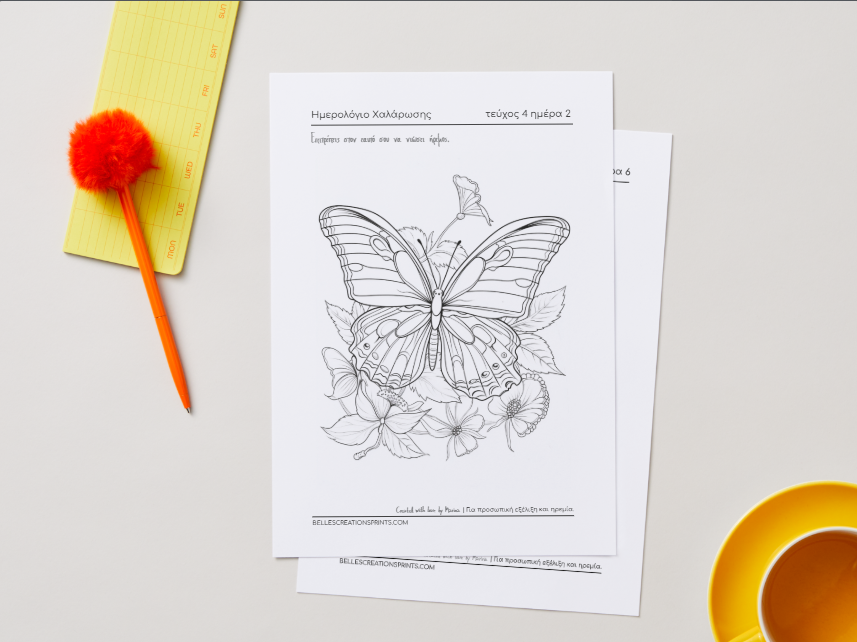 Ημερολόγιο Χαλάρωσης Τεύχος 4 Πεταλούδες ψηφιακό αρχείο Δημιουργικής Χαλάρωσης με χρωμοσελίδες ενσυνειδητότητας και αυτοφροντίδας